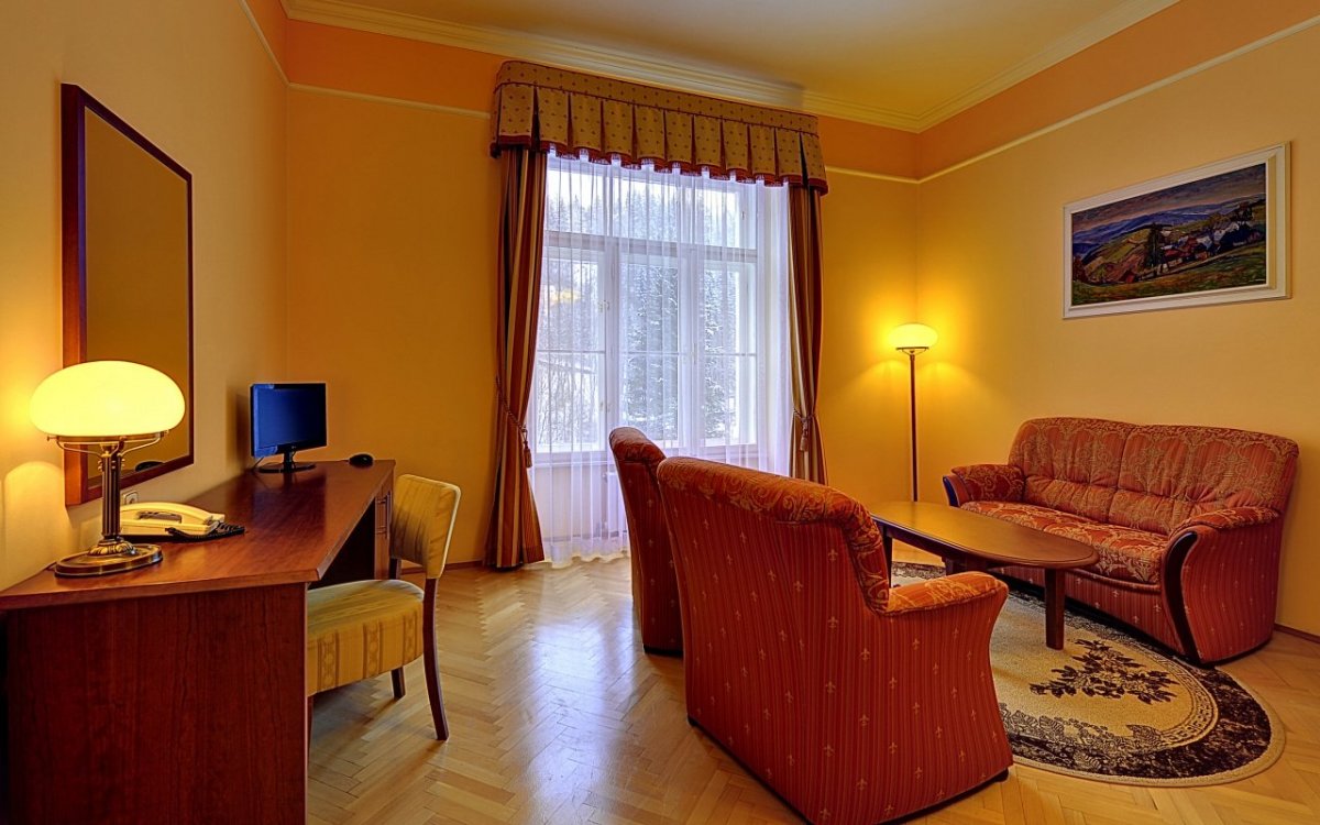 غرفة للنوم مع صالة صغيرة للجلوس، تلفزيون مع برامج عن طريق الستالايت، ميني بار، راديو مع ساعة منبهة، هاتف، صندوق الامانات، واي فاي، حمام مع حوض استحمام او دش ومرحاض وجهاز تجفيف الشعر ورداء حمام |